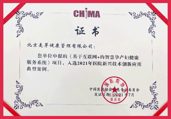 2021年7月30日,由中国医院协会信息专业委员会主办、《中国医院》杂志社承办的第25届中国医院信息网络大会(CHIMA 2021)在青岛拉开帷幕。大会开幕式上,中国医院协会信息专业委员会主任委员王才有公布了“2021年医院新兴技术创新应用典型案例”名单:组委会本次共收到案例212篇,内容涉及互联网+、医学人工智能、医疗云、大数据、物联网等技术方向,涵盖远程医疗、患者服务、临床应用、互联网医院、医学科研、医院管理等业务领域。经过行业专家背靠背盲审和终审,由北京协和医院联合北京麦芽健康管理有限公司申报的《基于互联网+的智慧孕产妇健康服务系统》项目,成功入选2021年医院新兴技术创新应用典型案例! ![]() ![]() 智慧孕产妇健康服务系统