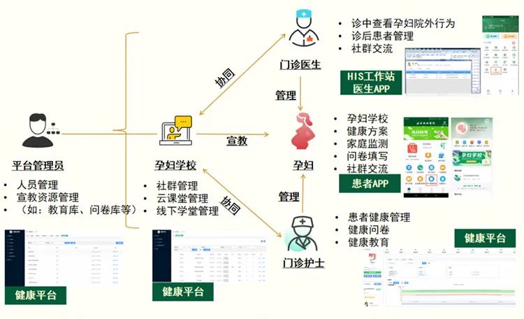 智慧孕产妇健康服务是通过信息化手段,实现孕产期宣教、健康服务的全流程管理,对孕产妇健康提升具有重要的意义,也是医院智慧服务能力的体现。北京协和医院为了让孕产妇便捷地获取优质服务资源和多学科的孕期健康知识,实现由院内诊疗服务到院外健康管理的全面妇幼保健服务,创新性地设计、构建了基于互联网+的智慧孕产妇健康服务系统。 系统依托互联网平台,基于孕产妇个人信息构建健康画像,提供符合孕程的健康宣教知识、健康方案和家庭监测工具,为医护人员提供院内、院外一体化的孕产妇健康信息。系统免费为孕产妇提供健康管理服务,提升了孕产妇对于优质医疗资源获取的便捷性,实现了孕产妇健康信息的闭环管理,保障了医院医疗服务的连续性,提高了妇幼保健服务水平。 ![]() 该服务系统主要由健康管理平台、患者APP模块、HIS医生站模块以及医生APP模块四部分组成,通过交互层、业务层、数据层等系统架构设计,实现孕产妇院内外闭环健康服务以及孕产妇线上线下一体化宣教。 孕产妇院内外闭环健康服务案例